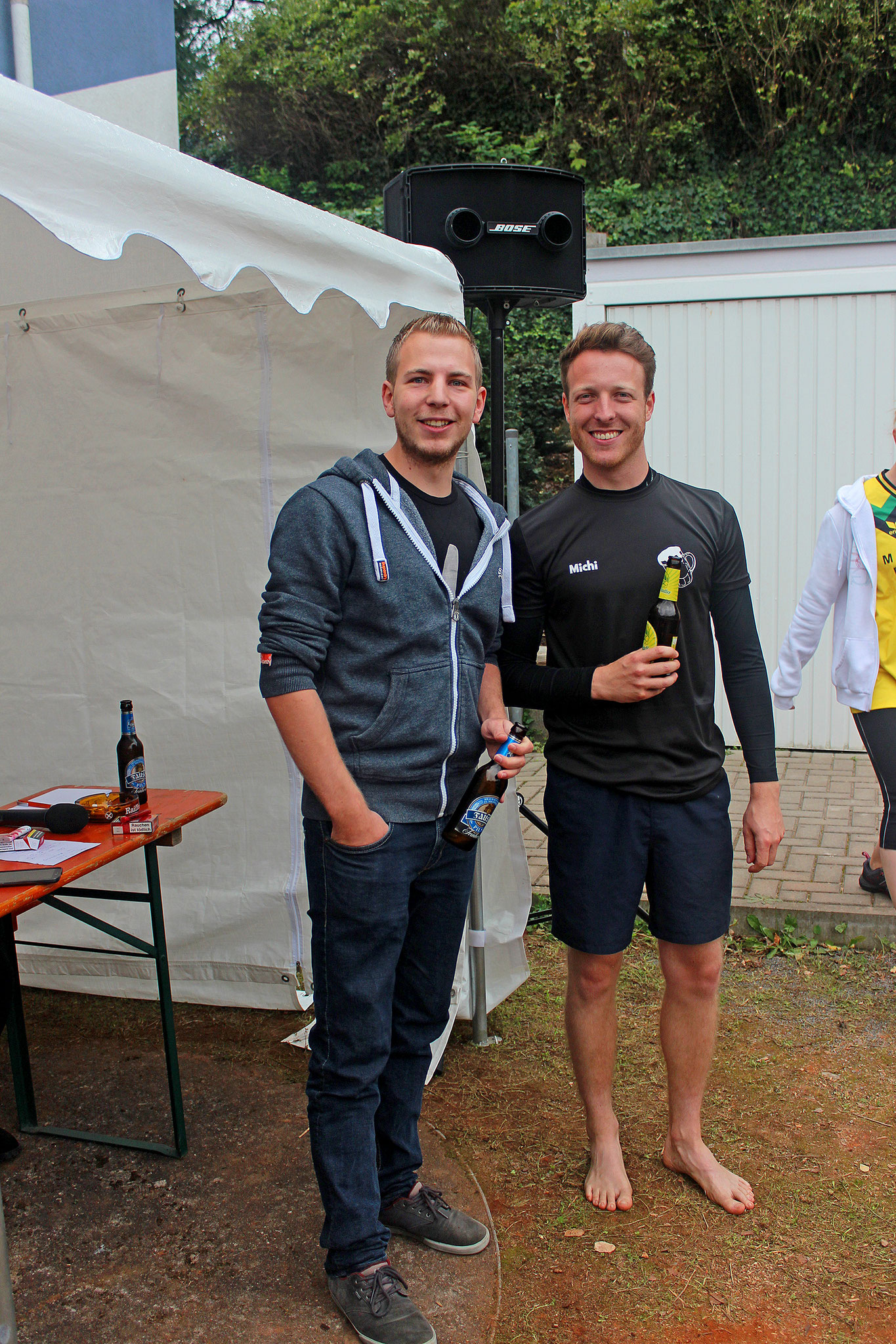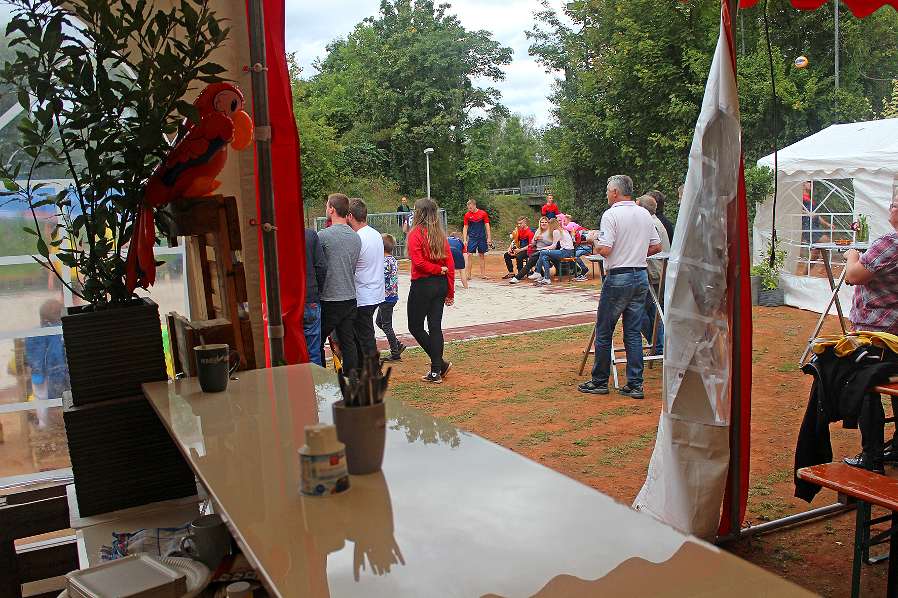 Obwohl der Beginn der Einweihungsfeier eigentlich für 11:30 Uhr angesetzt war, standen die ersten hochmotivierten Teilnehmer schon vor 11 Uhr auf dem Platz. Das Aufwärmen und Einspielen lies dann natürlich auch nicht lange auf sich warten. Auch die ersten Sixer Bier und Radler gingen schnell über die Ladentheke. Ein großes Lob geht daher an unsere vielen fleißigen Helfer, die schon so frühzeitig zum Helfen vor Ort waren, dass alle Aufgaben reibungsfrei über die Bühne gingen.