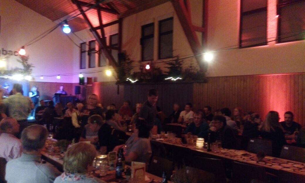 „Eins. Zwei. Tipp. Eins. Zwei. Tipp“ hieß es sogar für die Bedienungen, um kollisionsfrei über die volle Tanzfläche nach draußen zu kommen, um auch dort den zahlreichen Besuchern ein Getränk zu servieren. Das freundliche Herbstwetter und das romantische Lagerfeuer luden die Gäste dazu ein, es sich auch draußen auf dem Sportgelände gemütlich zu machen und den Abend zu genießen. Neben dem inzwischen schon traditionellen Lakefleisch und Schafskäse, gab es am Samstagabend auch wieder eine tolle Auswahl an leckeren Tapas. Hierbei bewiesen der TV wie jedes Jahr seine Kreativität und sein kulinarisches Können. Gekrönt mit der tollen Dekoration waren die Atmosphäre und die Stimmung in der Turnhalle perfekt.