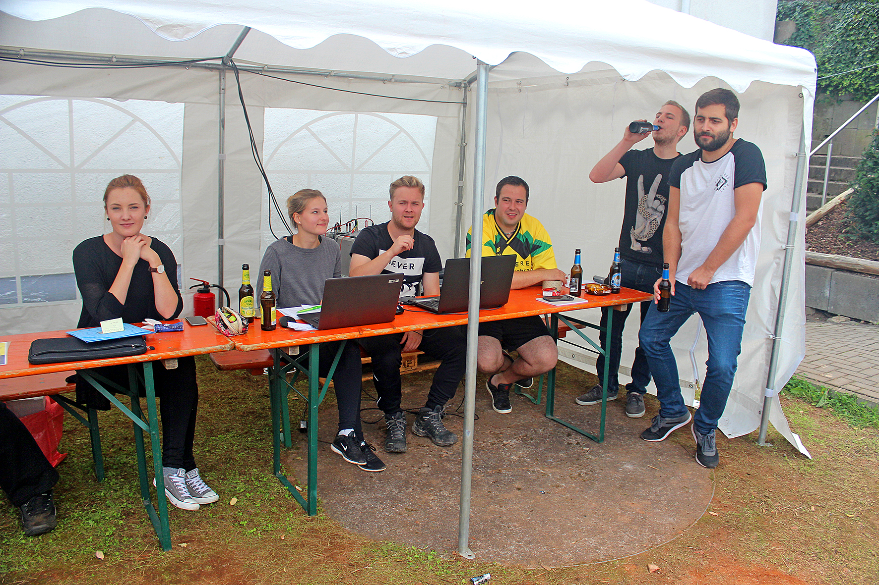Begrüßt wurden alle Mannschaften und Zuschauer von den Turniersprechern Tobi und Alex. Die beiden haben mit Begeisterung die Regeln und Abläufe erklärt und dabei für noch bessere Stimmung gesorgt, als eh schon herrschte. Auch während allen Spielen haben Sie die Besucher immer wieder auf dem Laufenden gehalten und für einen reibungslosen Ablauf gesorgt.
