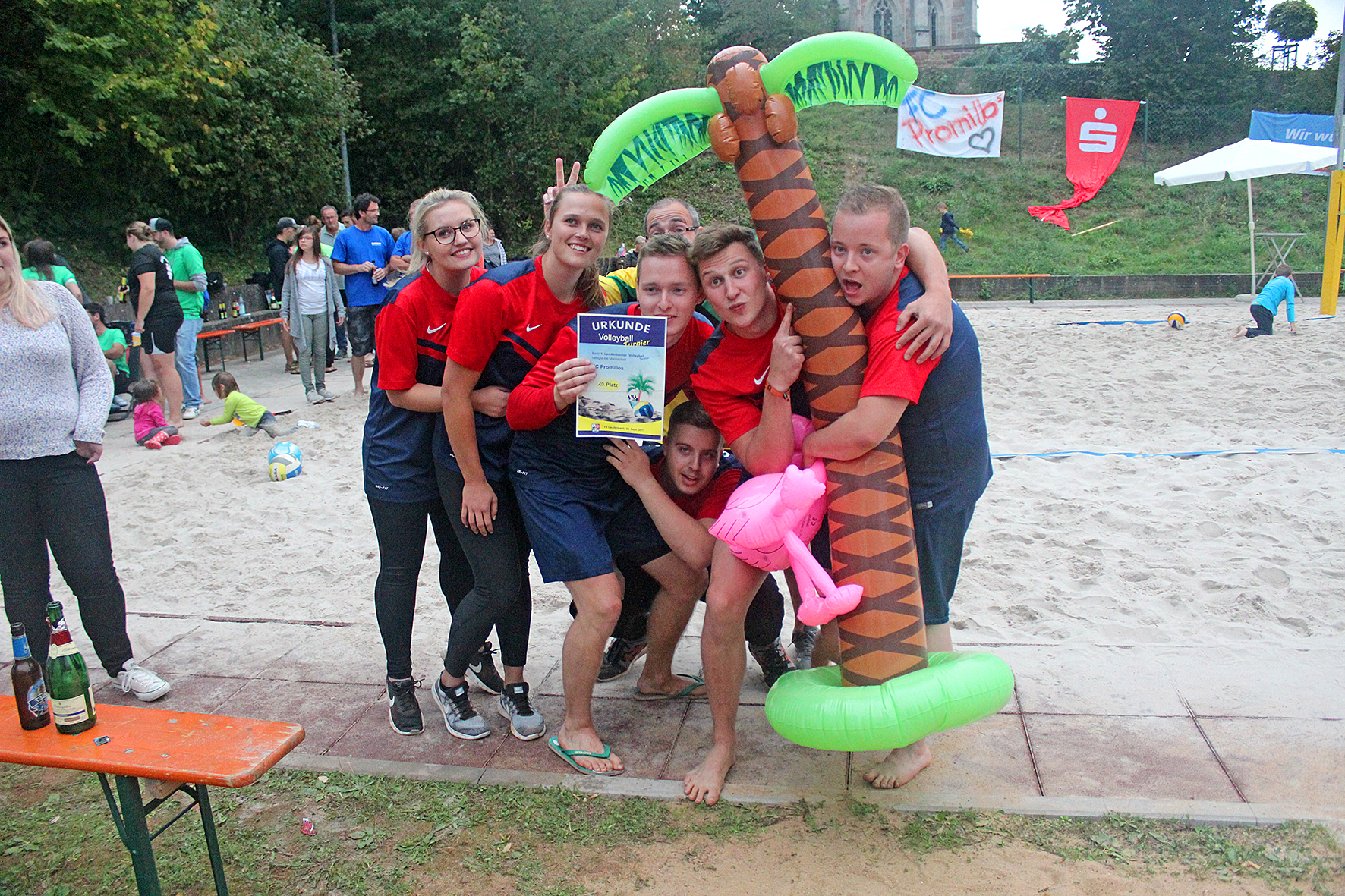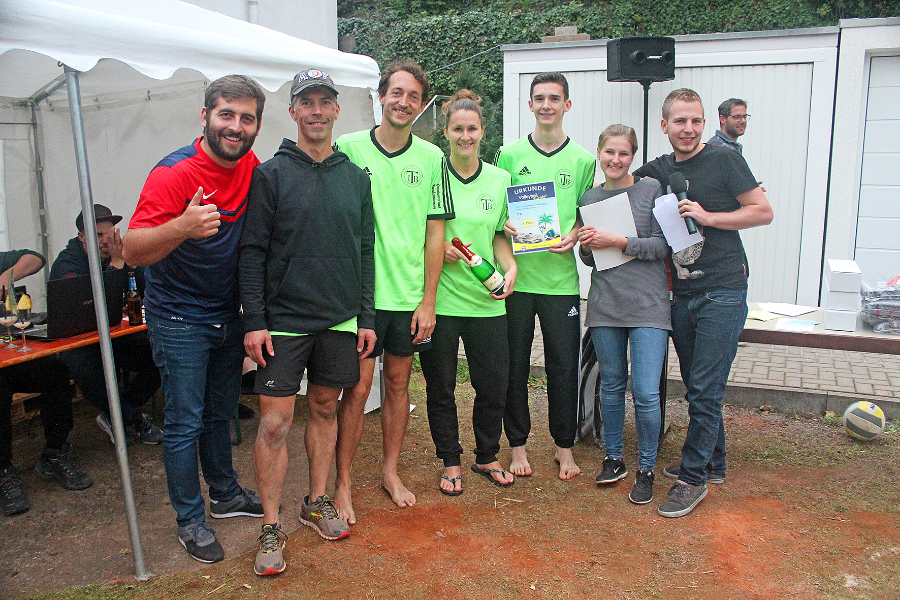 Nach den spannenden Spielen des Volleyballturniers kam schließlich die Siegerehrung. Hier wurde nun auch der Gewinner des Schoppenclubturniers bekanntgegeben. Die teilnehmenden Teams haben sich hier während dem ganzen Tag ein heißes Kopf-an-Kopf-Rennen geliefert und es waren immer nur wenige Punkte unterschied. Den größten Ehrgeiz bewiesen letztendlich jedoch das Team Dämmerschoppen aus Laudenbach.