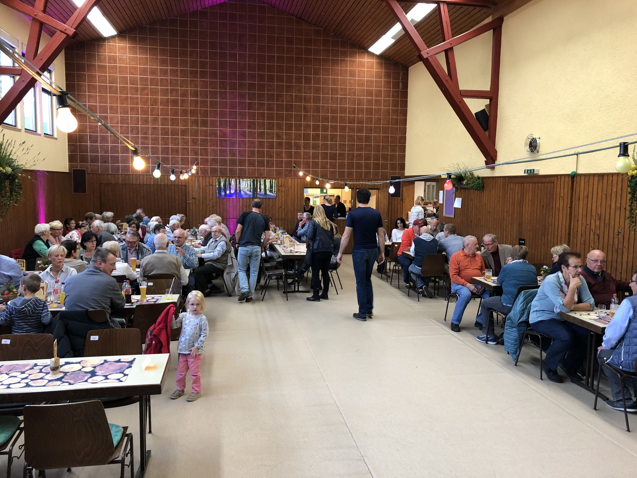 Für den Sonntag wurde die Turnhalle von der Partylocation dank der vielen Helfer für das Mittagessen umgerüstet, bei dem wie jedes Jahr etliche Kerbe-Fans in die Halle strömten, um das Essen zu genießen. Auch die Kuchentheke ließ für einen süßen Nachtisch, dank der fleißigen Kuchenbäcker, keine Wünsche offen.
