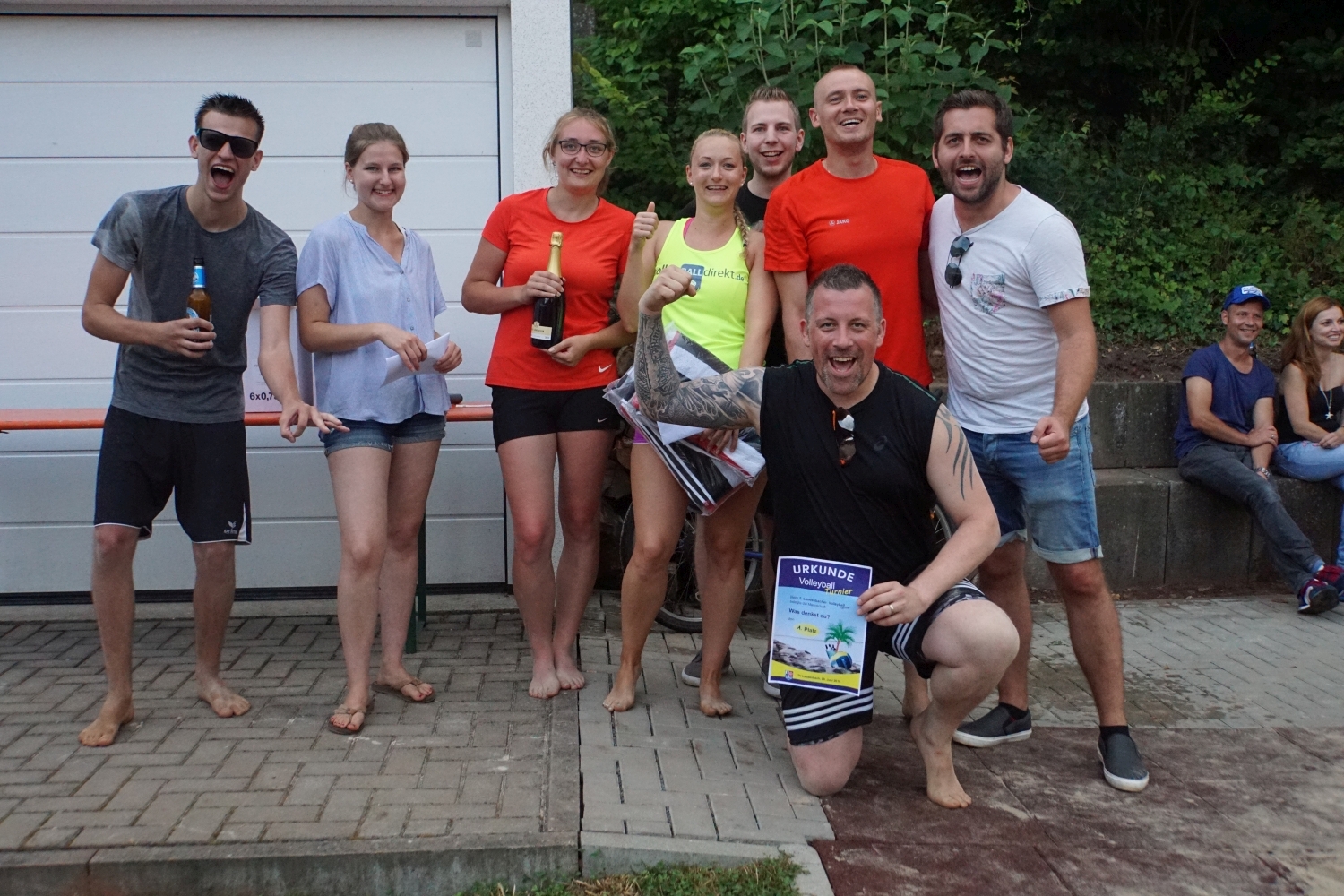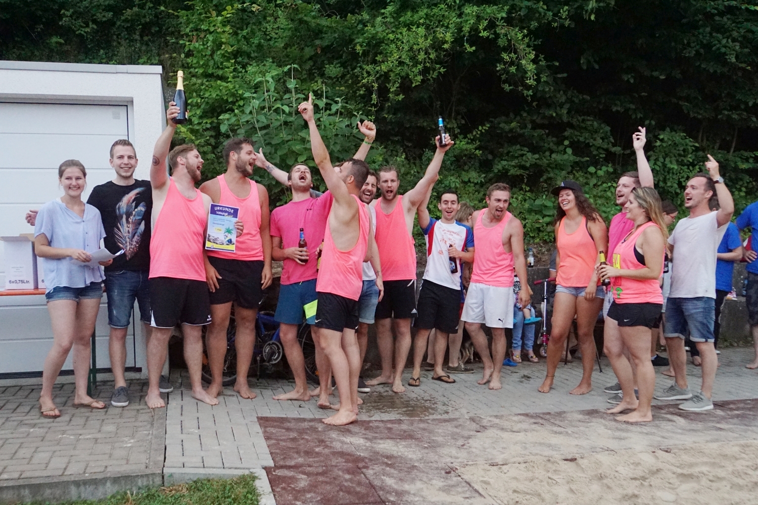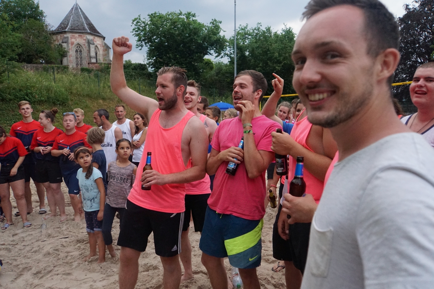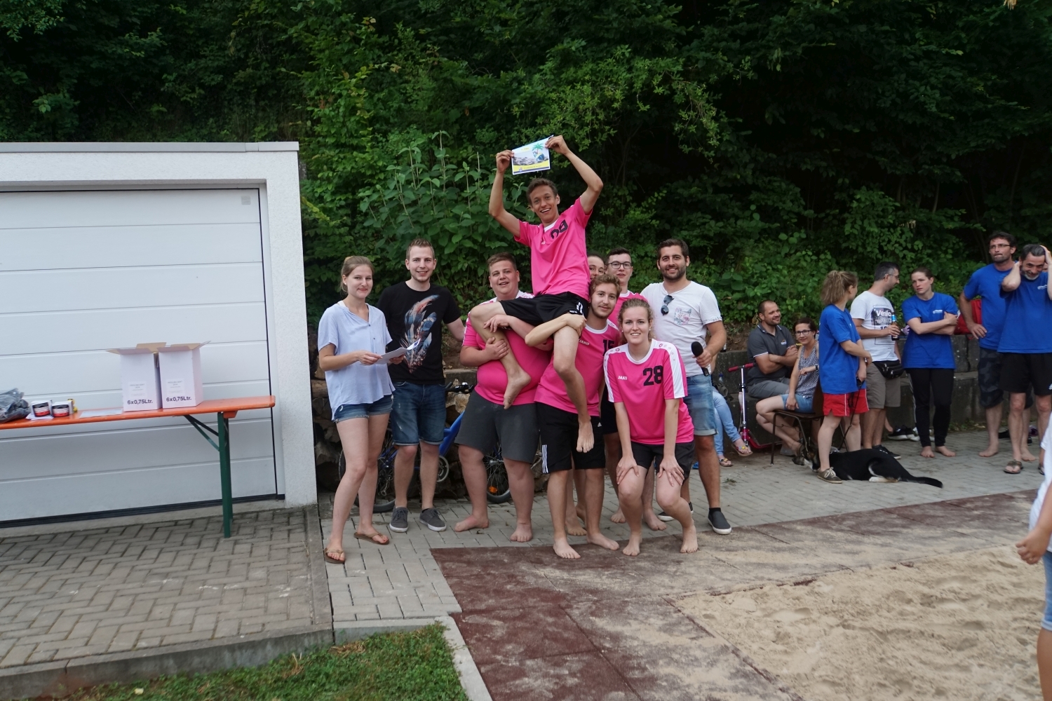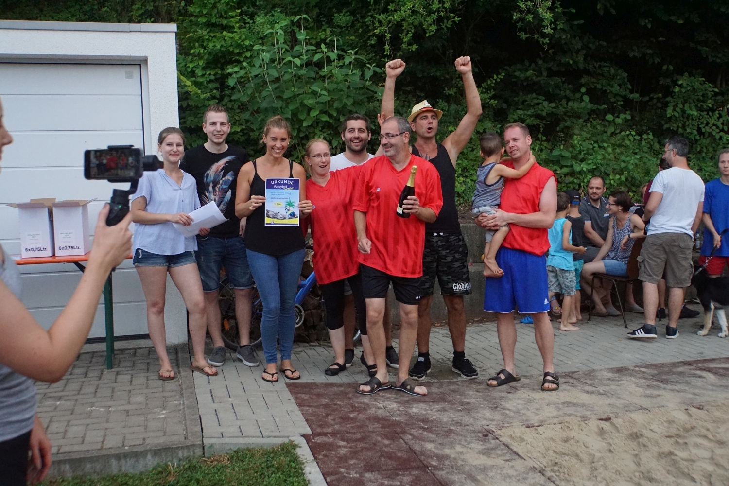 Gespielt wurde in zwei Gruppen mit jeweils sechs Teams mit jeweils vier Spielern auf dem Feld. Parallel taten die Teams alles dafür, um die begehrte Schoppenclub-Trophäe mit sportlichem Tempo beim Leeren der Bier-Sechser-Packs zu erkämpfen. Kurzum, gegen 19 Uhr war es entschieden: Im Beachvolleyball holte der Musikverein „Team Harmonie“ aus Laudenbach den dritten Platz, für die Vorjahressieger „ITB“ reichte es in diesem Jahr nur für Platz 2. Den Gesamtsieg erspielte sich in zwei Sätzen mit 15:26 Punkten das Team „Was denkst du?“ aus Großheubach.