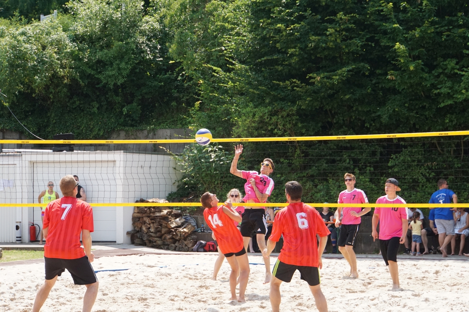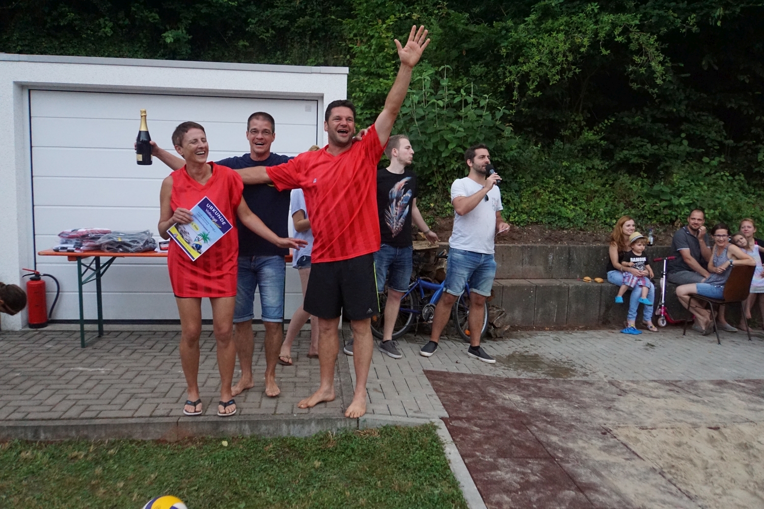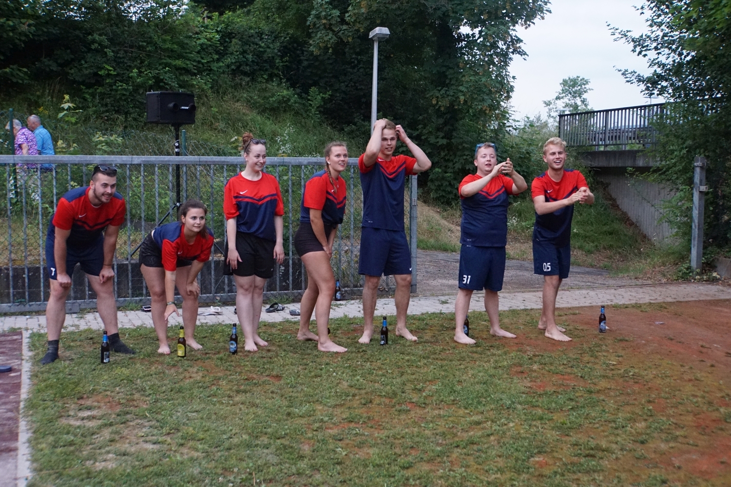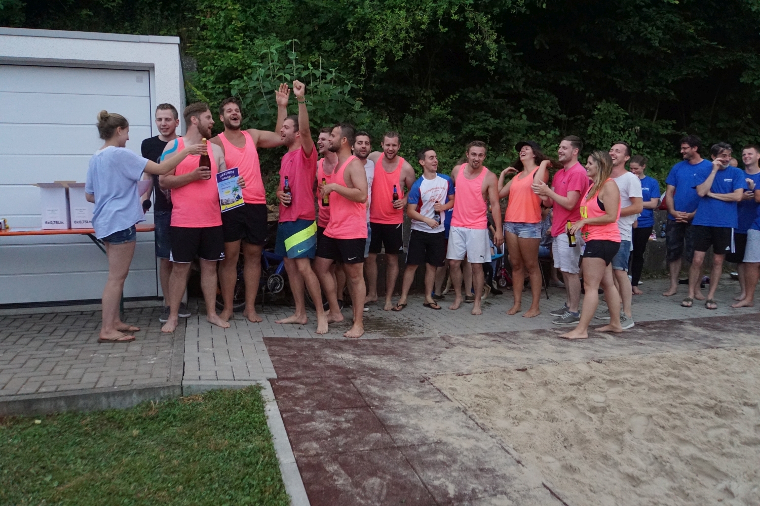 Gespielt wurde in zwei Gruppen mit jeweils sechs Teams mit jeweils vier Spielern auf dem Feld. Parallel taten die Teams alles dafür, um die begehrte Schoppenclub-Trophäe mit sportlichem Tempo beim Leeren der Bier-Sechser-Packs zu erkämpfen. Kurzum, gegen 19 Uhr war es entschieden: Im Beachvolleyball holte der Musikverein „Team Harmonie“ aus Laudenbach den dritten Platz, für die Vorjahressieger „ITB“ reichte es in diesem Jahr nur für Platz 2. Den Gesamtsieg erspielte sich in zwei Sätzen mit 15:26 Punkten das Team „Was denkst du?“ aus Großheubach.