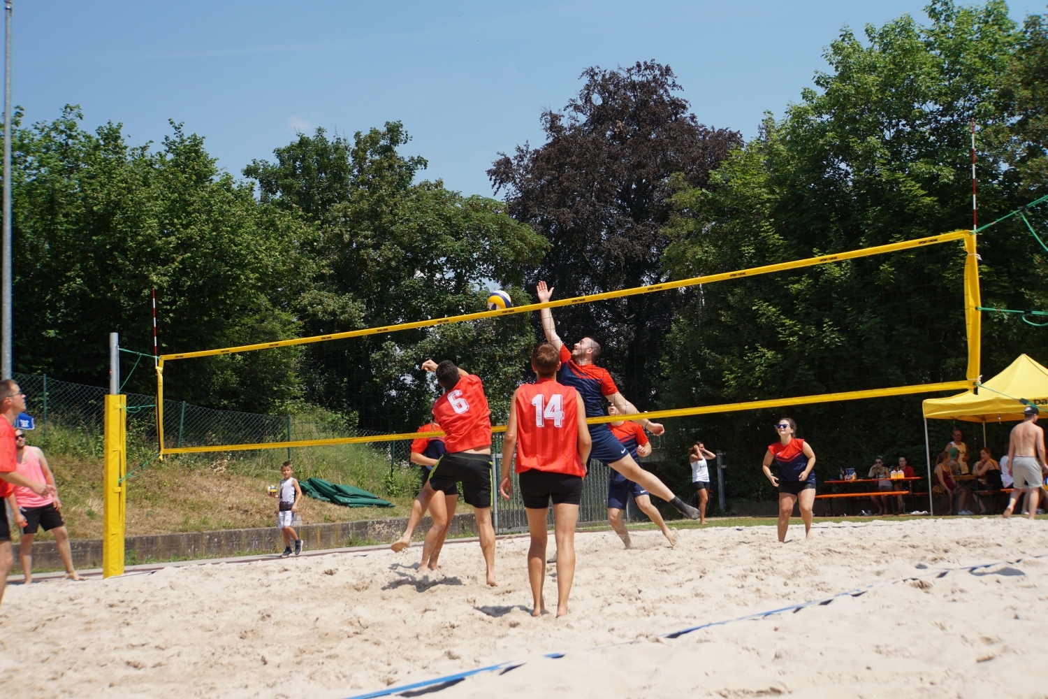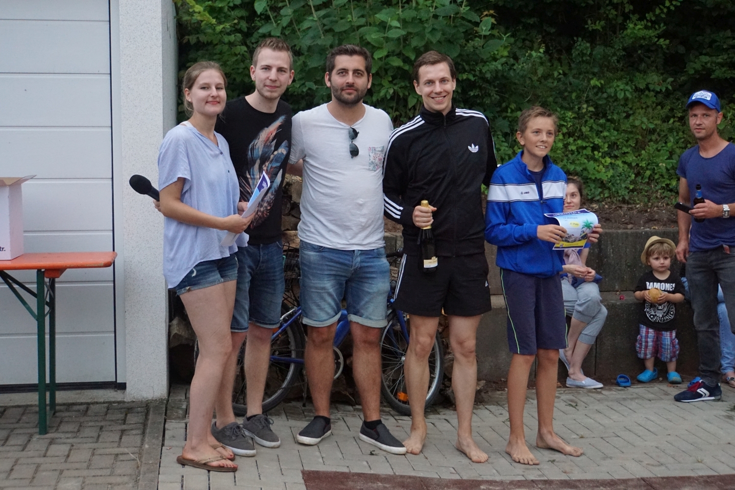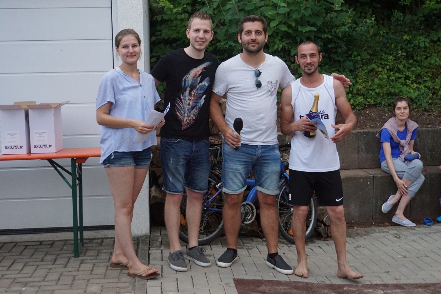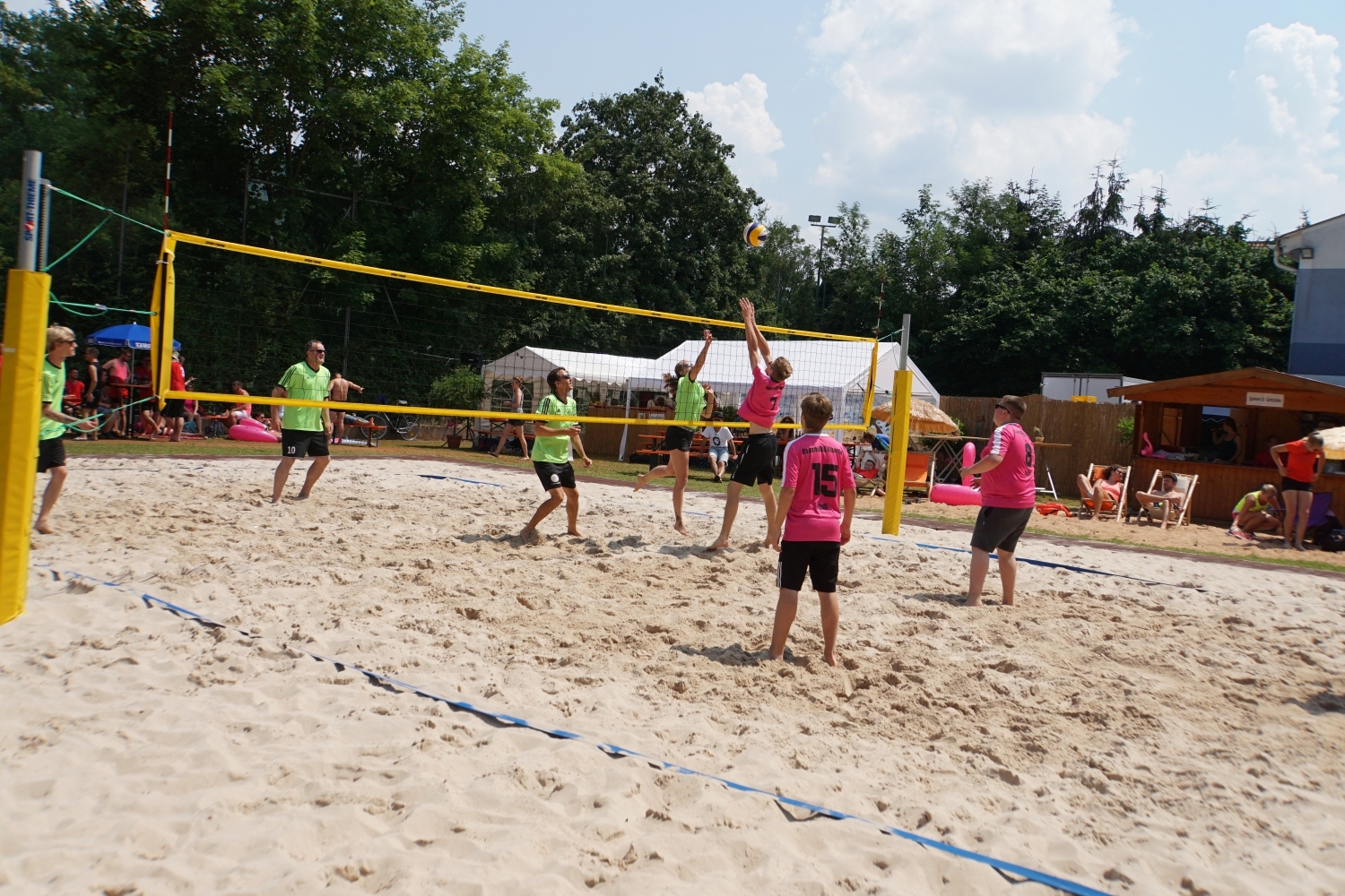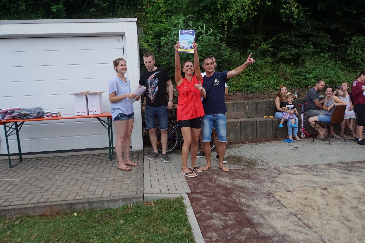 Gespielt wurde in zwei Gruppen mit jeweils sechs Teams mit jeweils vier Spielern auf dem Feld. Parallel taten die Teams alles dafür, um die begehrte Schoppenclub-Trophäe mit sportlichem Tempo beim Leeren der Bier-Sechser-Packs zu erkämpfen. Kurzum, gegen 19 Uhr war es entschieden: Im Beachvolleyball holte der Musikverein „Team Harmonie“ aus Laudenbach den dritten Platz, für die Vorjahressieger „ITB“ reichte es in diesem Jahr nur für Platz 2. Den Gesamtsieg erspielte sich in zwei Sätzen mit 15:26 Punkten das Team „Was denkst du?“ aus Großheubach.
