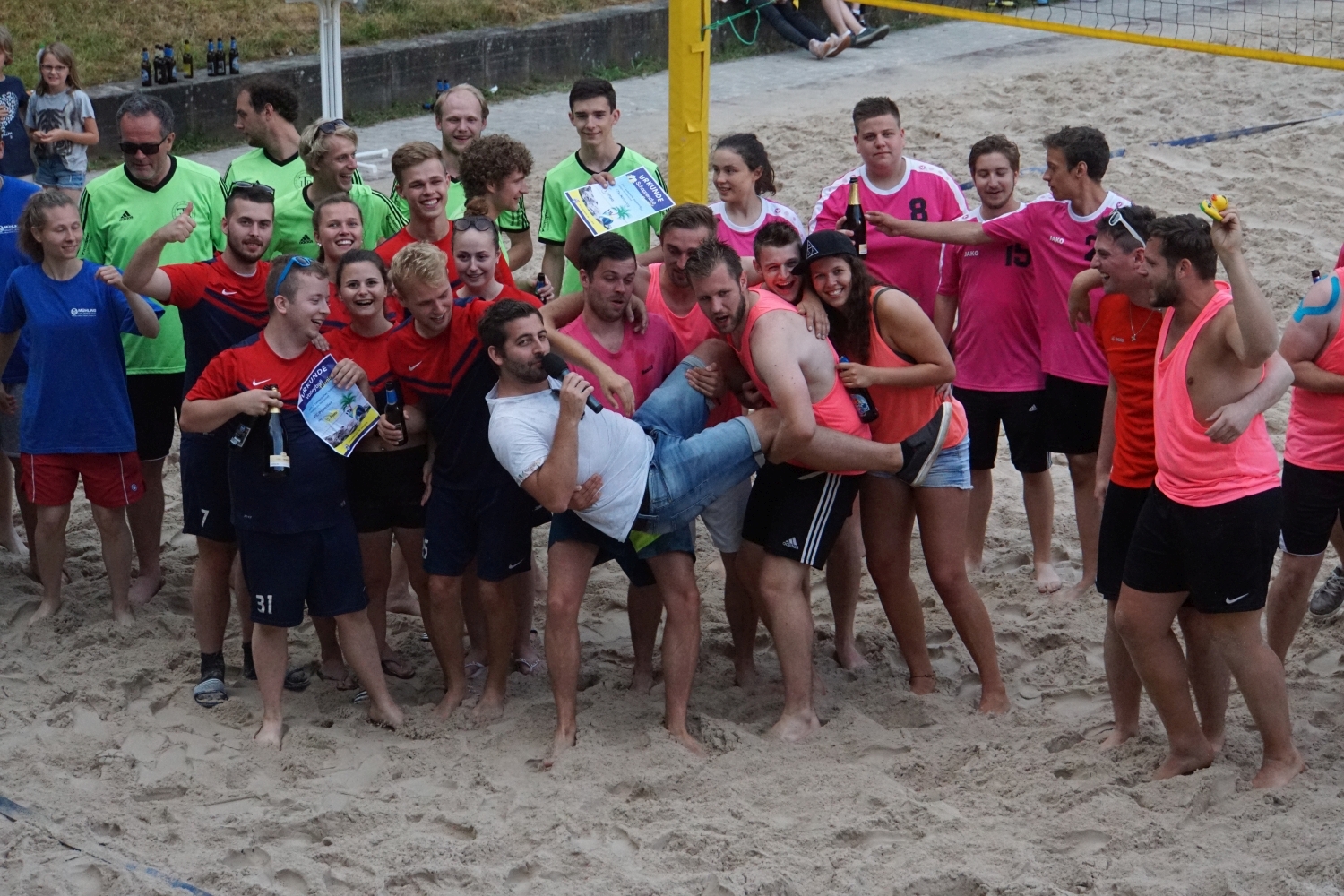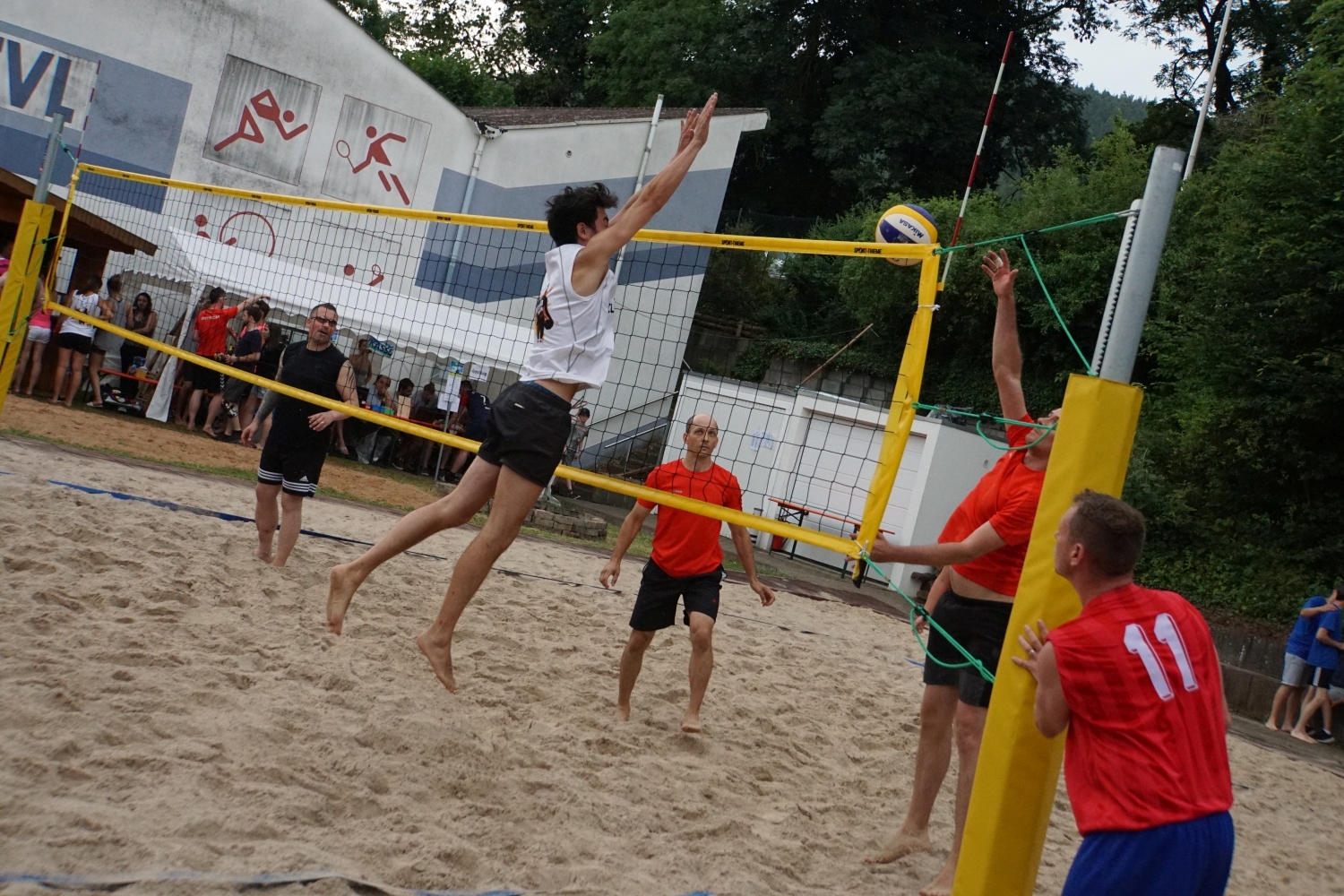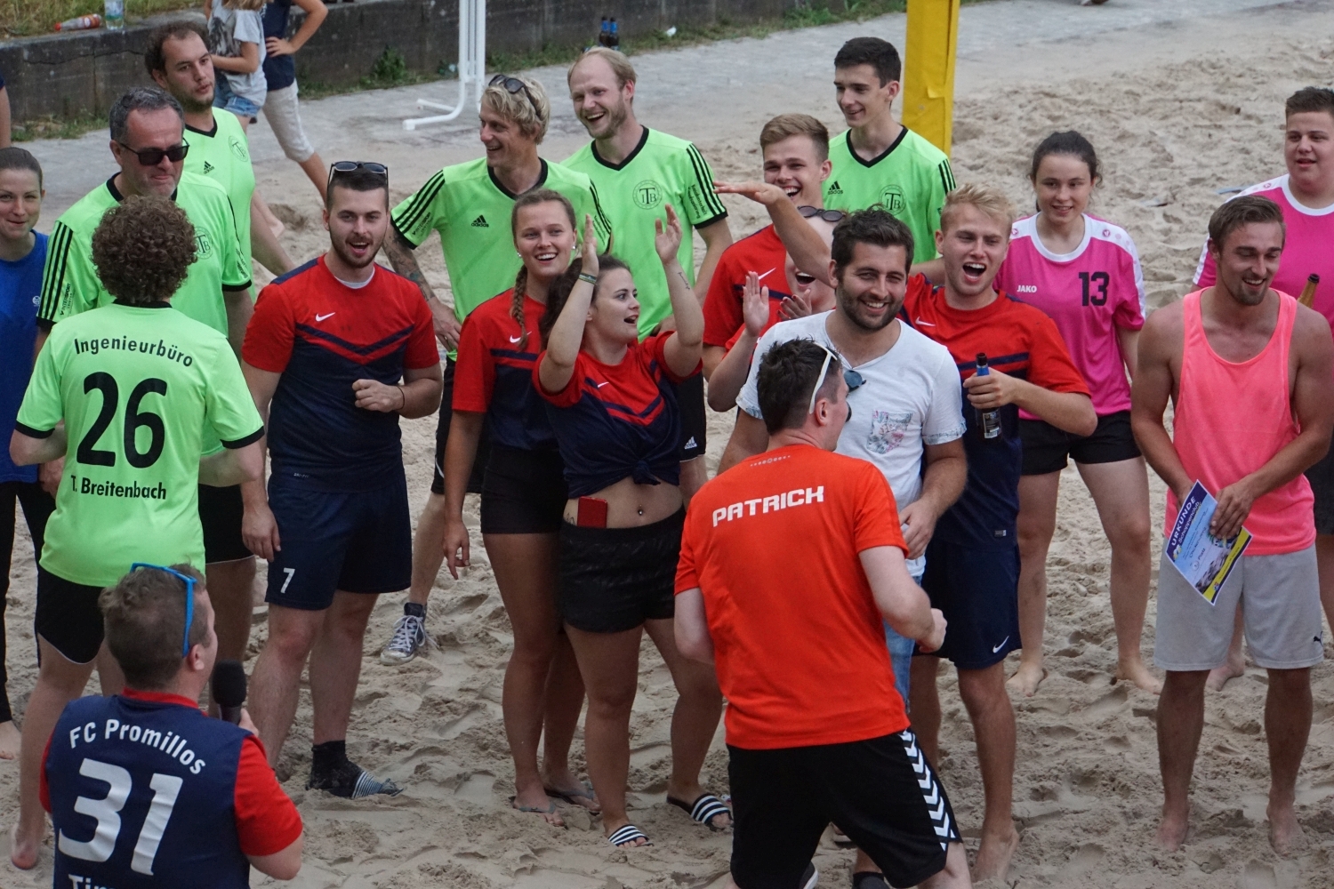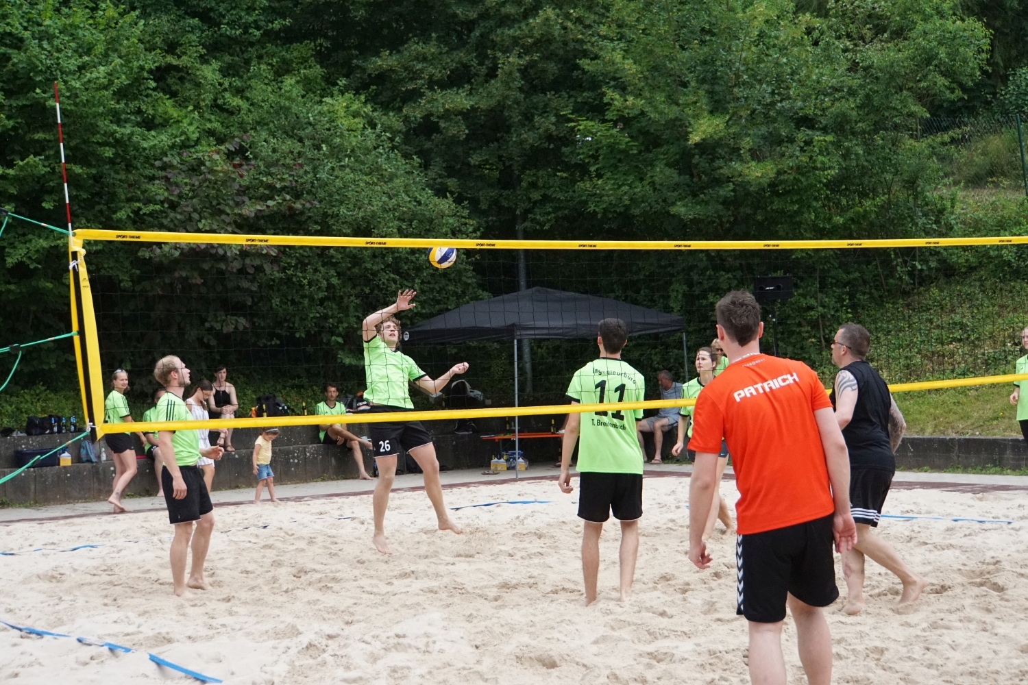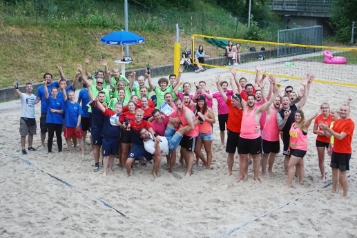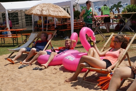 Gespielt wurde in zwei Gruppen mit jeweils sechs Teams mit jeweils vier Spielern auf dem Feld. Parallel taten die Teams alles dafür, um die begehrte Schoppenclub-Trophäe mit sportlichem Tempo beim Leeren der Bier-Sechser-Packs zu erkämpfen. Kurzum, gegen 19 Uhr war es entschieden: Im Beachvolleyball holte der Musikverein „Team Harmonie“ aus Laudenbach den dritten Platz, für die Vorjahressieger „ITB“ reichte es in diesem Jahr nur für Platz 2. Den Gesamtsieg erspielte sich in zwei Sätzen mit 15:26 Punkten das Team „Was denkst du?“ aus Großheubach.
