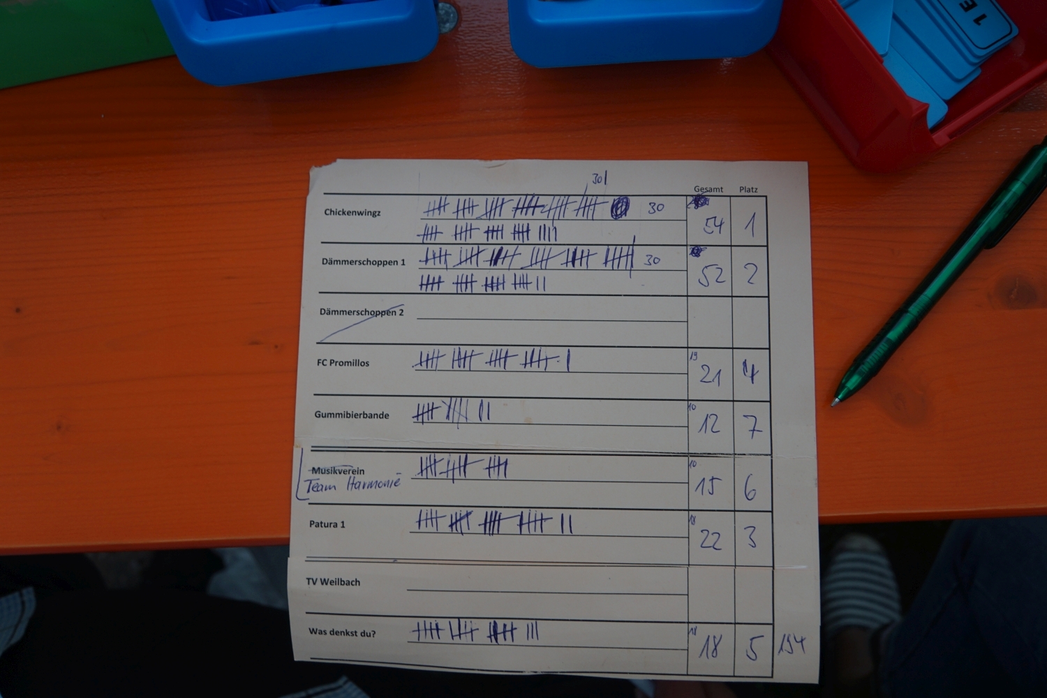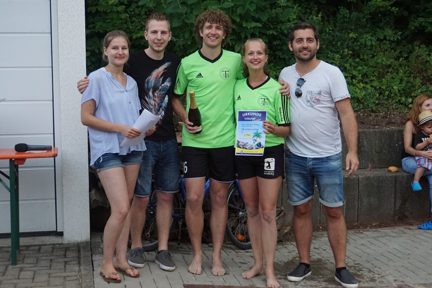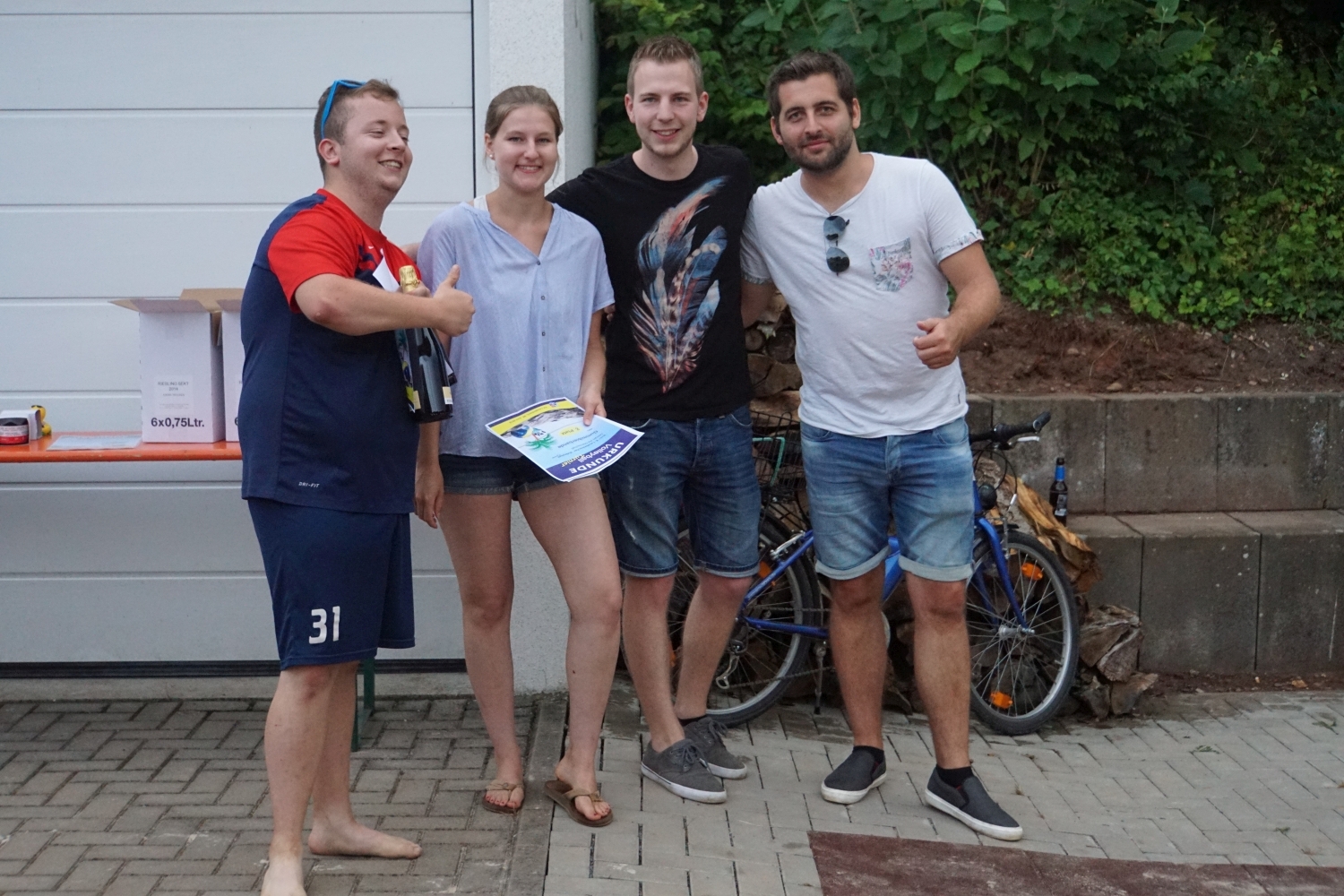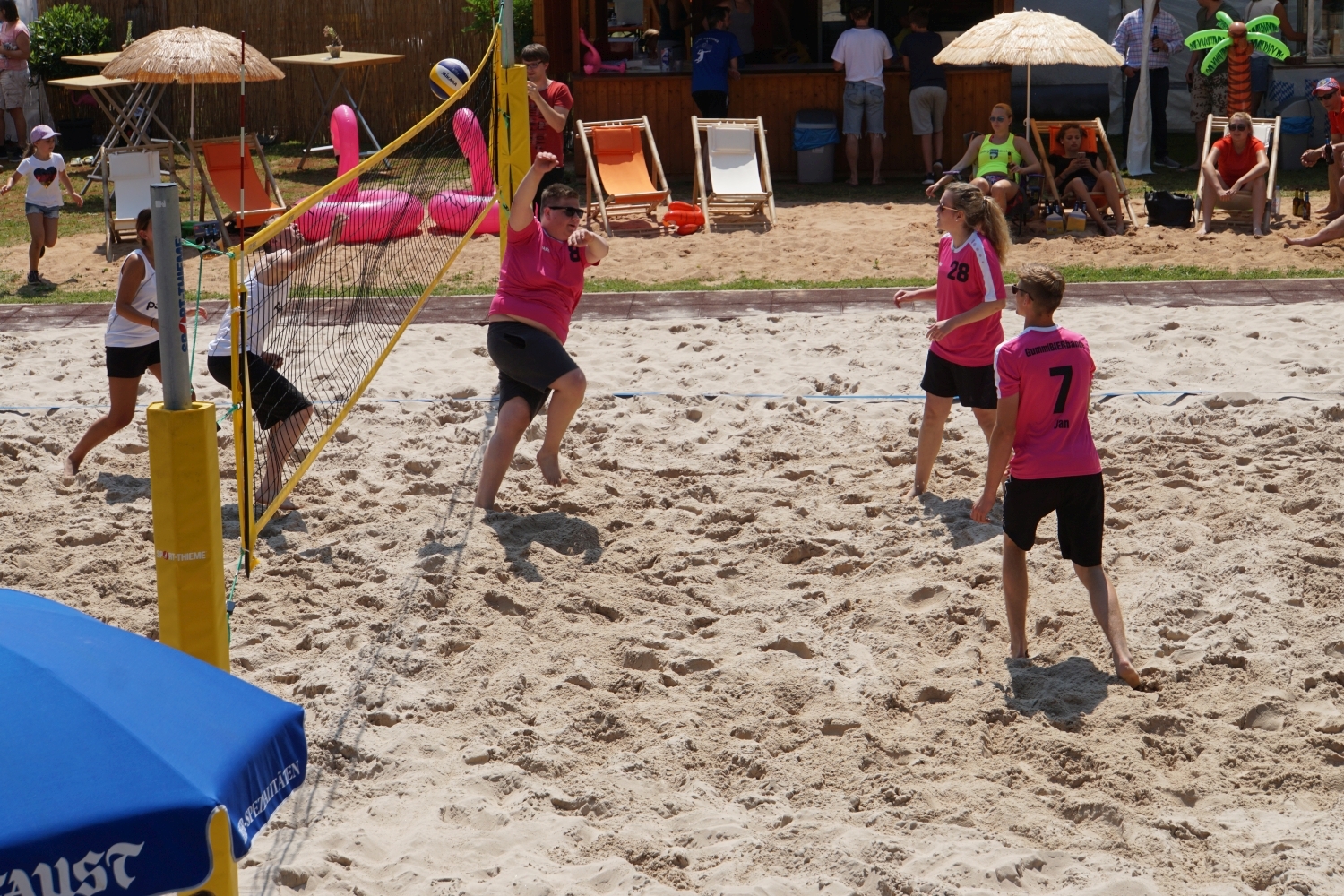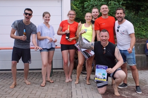 Gespielt wurde in zwei Gruppen mit jeweils sechs Teams mit jeweils vier Spielern auf dem Feld. Parallel taten die Teams alles dafür, um die begehrte Schoppenclub-Trophäe mit sportlichem Tempo beim Leeren der Bier-Sechser-Packs zu erkämpfen. Kurzum, gegen 19 Uhr war es entschieden: Im Beachvolleyball holte der Musikverein „Team Harmonie“ aus Laudenbach den dritten Platz, für die Vorjahressieger „ITB“ reichte es in diesem Jahr nur für Platz 2. Den Gesamtsieg erspielte sich in zwei Sätzen mit 15:26 Punkten das Team „Was denkst du?“ aus Großheubach.