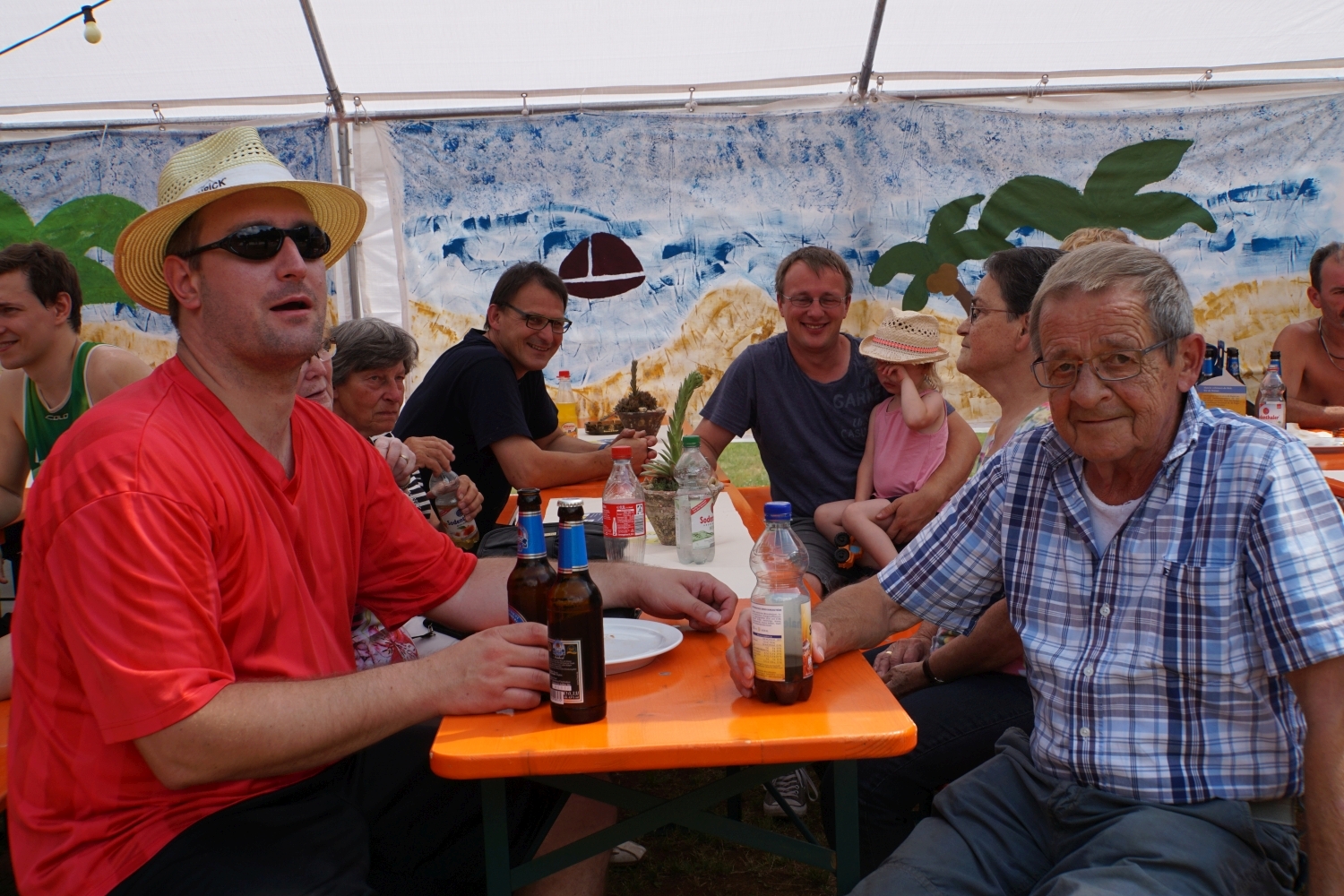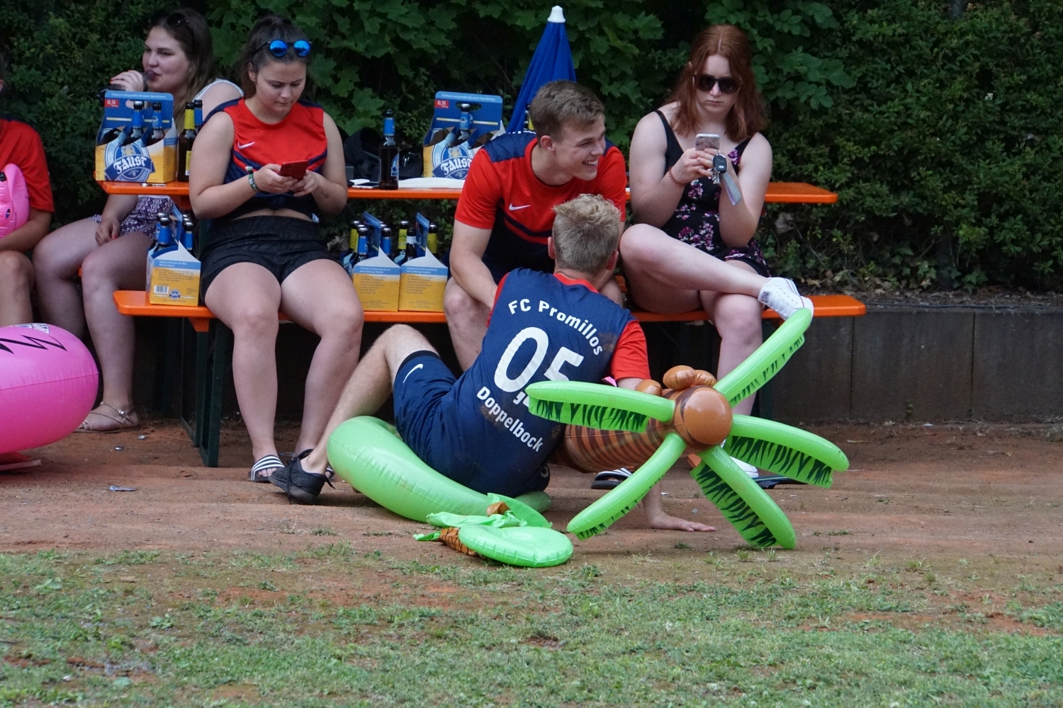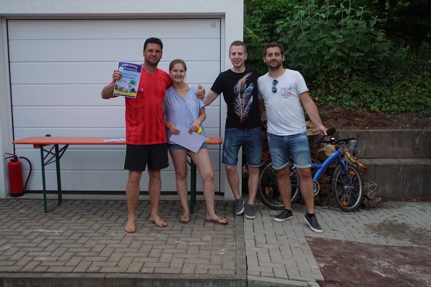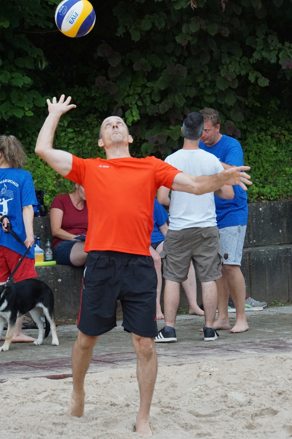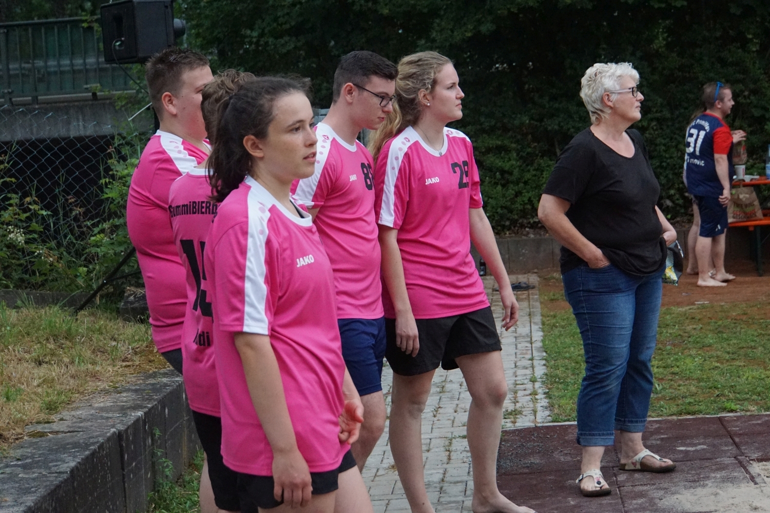 Gespielt wurde in zwei Gruppen mit jeweils sechs Teams mit jeweils vier Spielern auf dem Feld. Parallel taten die Teams alles dafür, um die begehrte Schoppenclub-Trophäe mit sportlichem Tempo beim Leeren der Bier-Sechser-Packs zu erkämpfen. Kurzum, gegen 19 Uhr war es entschieden: Im Beachvolleyball holte der Musikverein „Team Harmonie“ aus Laudenbach den dritten Platz, für die Vorjahressieger „ITB“ reichte es in diesem Jahr nur für Platz 2. Den Gesamtsieg erspielte sich in zwei Sätzen mit 15:26 Punkten das Team „Was denkst du?“ aus Großheubach.