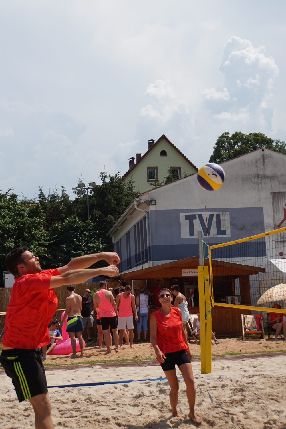Angesichts der großen Beteiligung im Vorjahr hing die Latte, beziehungsweise das Netz, für den Turnverein Laudenbach besonders hoch. Nicht ohne Grund hatten die Vorbereitungen für den Wettkampf bereits mit Abbau der Zelte und Biertische im Jahr 2017 begonnen, als der neue Beachvolleyballplatz mit einem Wettkampf eingeweiht wurde, sagt Franzi Munz vom Organisationsteam des Vereins. Die Mühe hat sich gelohnt. Um es mit den Worten