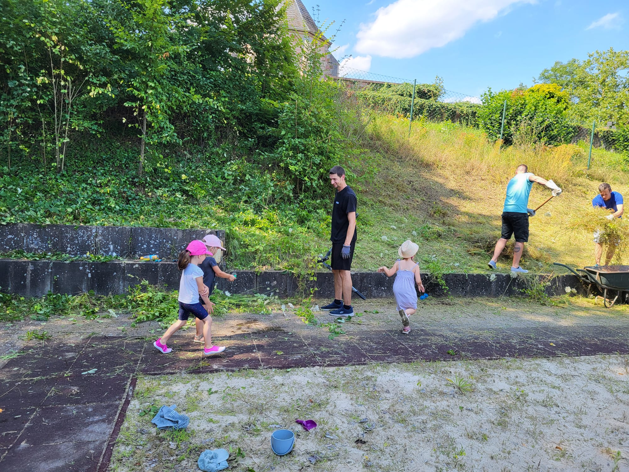 An beiden Tagen fanden sich also einige große und kleine Helfer auf dem Turnhallengelände zusammen, um als Team die Arbeit zu bewältigen.